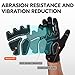 IMPACT & VIBRATION REDUCTION - 3D-structured PVC/TPR patches on the back for great impact protection. High dexterity EVA padding offering stereoscopic vibration resistance. Soft synthetic leather with PVC reinforcement for abrasion reaching EN388 Level 3 under 2800 Circles
