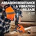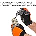 PALM & BACK - High visibility orange stretch spandex back also provides exceptionally dexterity and breathability. Premium goat leather for abrasion reaching EN388 level 2 under 600 circles, provides comfort and dexterity for all day wear; Textured PVC palm patches offers extra durability