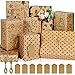 【Value Gift Wrapping Paper Set】Includes 6 kraft wrapping paper sheets + FREE 8pcs gift tags + FREE 2 rolls X 10 meters natural flax string, thick birthday wrapping paper can meet most sizes of gift packaging needs perfect combination for gift wrap