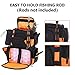 EASY ACCESS & ORGANIZATION: 3 spacious main compartment with wide opening and dual zippers for easy access to your essential fishing gear, such as fishing rod, fishing reel, line, tackle box, etc.
