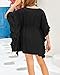 ❤Features: Oversized style, round neck, drop shoulders, half sleeves, bat sleeve, ruffled edge, elastic waist, tassel knot, above the knee length, plain color, loose fit, super cute girls bikini coverups