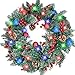 Lighted Christmas Wreath Battery Operated: Our pre-lit Christmas wreath needs batteries required(not included), allowing you to place them anywhere without the worry of needing a plug socket nearby.Our lighted Christmas wreath can emit red, blue, green and yellow LED lights, and the lights can be adjusted to meet your different needs. It emits a brilliant light at night and the perfect lighting for Christmas.
