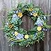 【Material】Handcrafted on a natural sturdy grapevine base with faux daisy flower, yellow designer silk flower blossoms, blue accent faux spring blooms, and yellow pip berries. perfect colors for an Easter wreath display as well.