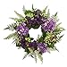 Purple flowers are sprinkled with tiny green berries. The 24” artificial hydrangea berry wreath will bring serenity and color into any space