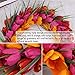 Handcrafted:These beautiful decorative wreaths are handmade with care, vibrant Artificial Tulip accented with brown durable twigs vine that cover the base of the floral wreath.