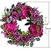 【Fake Rose Flower Heads】 Pink and purple flower blooms, abundant silk foliage, wispy blossoms, Handcrafted on a sturdy, durable wreath base. Makes a great Valentine's Day Wreath, Spring Wreath, and front door wreath for decoration.