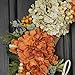 The wreath is handcrafted with autumn colors. Easy to DIY. orange and white hydrangea hello wreath, orange and red berries and green artificial leaves are interwoven, lifelike appearance and realistic feel.