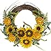 MATERIAL - The sunflower wreath is decorated with a full circle of artificial sunflowers, small yellow flowers and clear texture leaves on the natural twig round cane base. They are durable, soft and look very realistic.