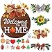 Excellent Details: Sunflowers and eucalyptus leaves are double-fixed by rope and hot melt glue on the welcome home sign board, which is very firm and avoids the problem of greenery easily falling like other similar products. The Hello sign is glued seamlessly, and the hanging rope is detachable and replaceable.