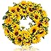 🌻 Delicate Design --The sunflower wreath is embellish with quality sunflower flowers heads and green leaves, accented with durable branches and a sturdy base.