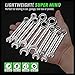 ▲ ALL-IN-ONE COMBO WRENCH SET - This wrench set contains a full range of all the most commonly used sizes covering both standard inch and metric: 1/4, 9/32, 5/16, 11/32, 3/8, 7/16, 1/2, 9/16, 5/8, 11/16, 3/4”, and 8mm, 9mm, 10mm, 11mm, 12mm, 13mm, 14mm, 15mm, 16mm, 17mm, 18mm, 19mm, with permanent size marking stamped at both ends and on both sides