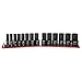 28-piece set includes (14) 1/2 in. drive deep impact sockets: 7/16, 1/2, 9/16, 5/8, 11/16, 3/4,13/16, 7/8, 15/16, 1, 1-1/16, 1-1/8, 1-3/16, and 1-1/4 in. and (14) shallow impact sockets: 7/16, 1/2, 9/16, 5/8, 11/16, 3/4,13/16, 7/8, 15/16, 1, 1-1/16, 1-1/8, 1-3/16, and 1-1/4 in. Comes with a billet aluminum socket rail made by Westling Machine in the USA