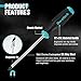 The 180-Degree pivoting flex head design help you easily reach and control nuts or fasteners in tight space, making your work more effortlessly.