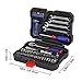 Set includes 1/4 inches, 3/8 inches and 1/2 inches drive tools (SAE and Metric). Drive Type 6 and 12 Point. Drive Tang Size 1/4 inches, 3/8 inches, 1/2 inches