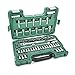 [COMPLETE TOOL SET] Contains a ratchet, two extension bars (3- and 6-inch), a universal joint and a range of standard or deep sockets