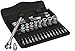 Includes 1/4-inch ratchet, 13 sockets (metric), 2 Flexible Lock Extensions (short and long), Sliding T-handle, Universal joint, Wobble Extension, Adaptor and 22 bits