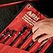 EASY STORAGE: 25.5-inch x 18.9-inch (64.8cm x 48cm) canvas pouch that includes 3 metal ring grommet mounting holes to hang on your pegboard or wall; Each pocket includes an imprinted size to allow you to keep tools in order; Rolls up to be 3.25 inches x 18.9 inches (8.3cm x 48cm) and has 2 secure loop and hook closures to keep bundled up for easy transportation, safe storage, and quick organization; Vibrant red color is easy to spot across the shop and in your pack of tools