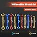 【WHAT YOU GET】 10 x SAE wrenches; 10 x Metric wrenches; 1 x storage pouch; 1 x large ring. With a storage pouch and a large ring for easy organization and quick access.