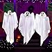 SUPER VALUE PACK. Add a cute and spooky atmosphere to your Halloween with our flying ghost halloween decoration. You will get 3 Pcs white hanging ghosts with different spooky faces.