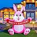 🐰 4FT Height Easter Decorations Inflatable: A pink bunny come with LED lights built inside, smiling and holding a basket of Easter eggs, which is great for your home & yard to get your family and friends in the festive spirit, show your guests with warm wishes in Easter Day.
