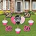 Cupcake and 50 Lawn Decorations INCLUDES 8 coordinating Chic 50th Birthday - Pink, Black and Gold yard decorations: 1 Large Happy Birthday, 3 Cupcakes, 4 - 50; and 16 stakes for displaying. Easy assembly instructions are also included.
