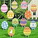 Package Includes: the Easter eggs set comes with 12 pieces large Easter egg signs with different pattern design (printed one side), 24 fiber sticks for plug in, 1 roll white ribbon for hanging(72ft); There are various pattern styles to decorate your Easter holiday and meet your needs